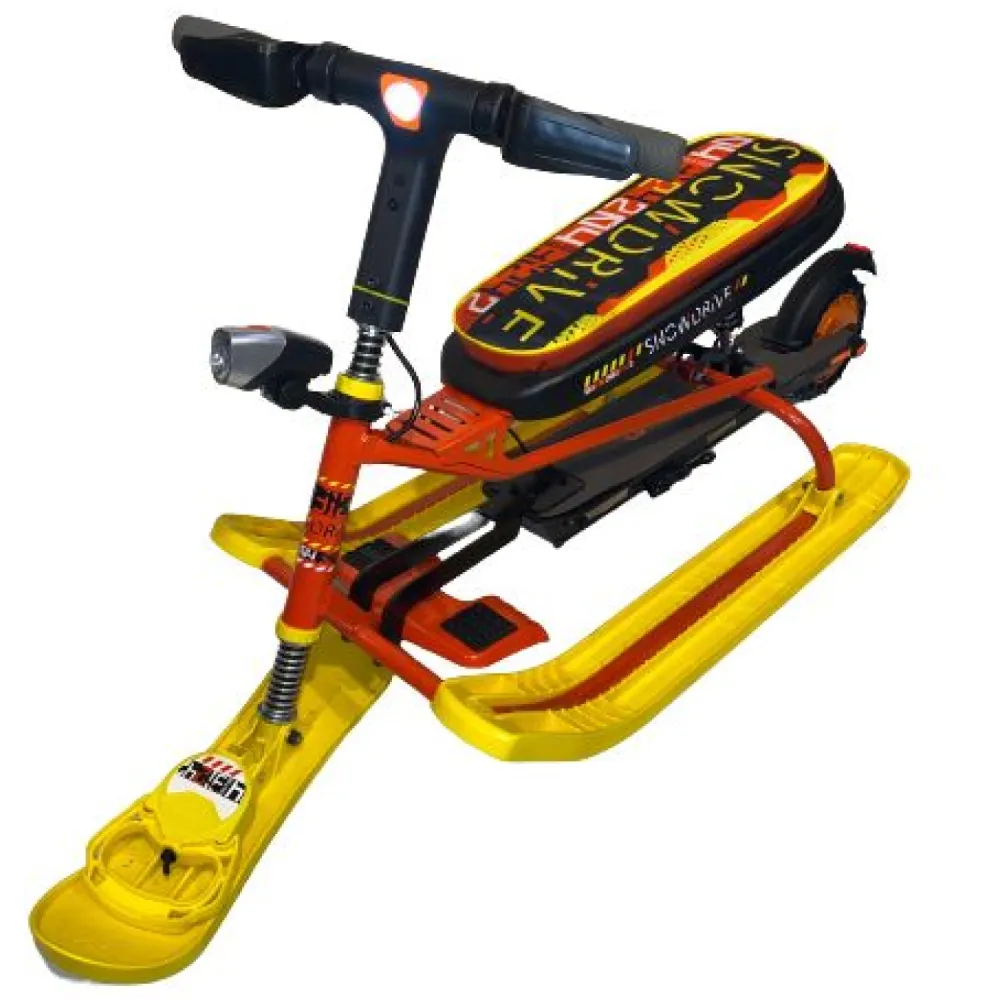При весе 15 кг техника рассчитана на пользователей подросткового возраста с массой тела до 70 кг. При мощности электромотора в 3500 Вт способен разогнаться до 25 км/час. Зарядки батареи хватает на 2-3 часа или дистанцию до 15 км, что зависит от жесткости эксплуатации модели райдерами. Производитель считает, что при таких параметрах не лишним станет покупка дополнительных аксессуаров защиты для ездока. Модель оснащена компактными эргономичными лыжами и фирменной тормозной системой, благодаря которым даже при максимальном разгоне производитель гарантирует высокую степень безопасности, минимальные риски заносов. Оптимальная температура эксплуатации в качестве снегоката составляет 0 (-20) градусов.