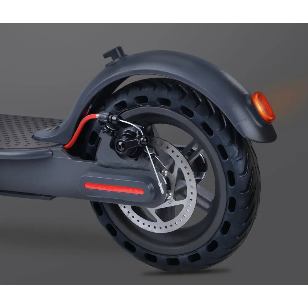 Также электросамокат AOVO M365 PRO складывается в компактное положение. В сложенном положении его легко транспортировать. В передней части электросамоката имеются так называемые фары. Они будут освещать дорогу в темное время суток. В задней части есть специальная подножка.