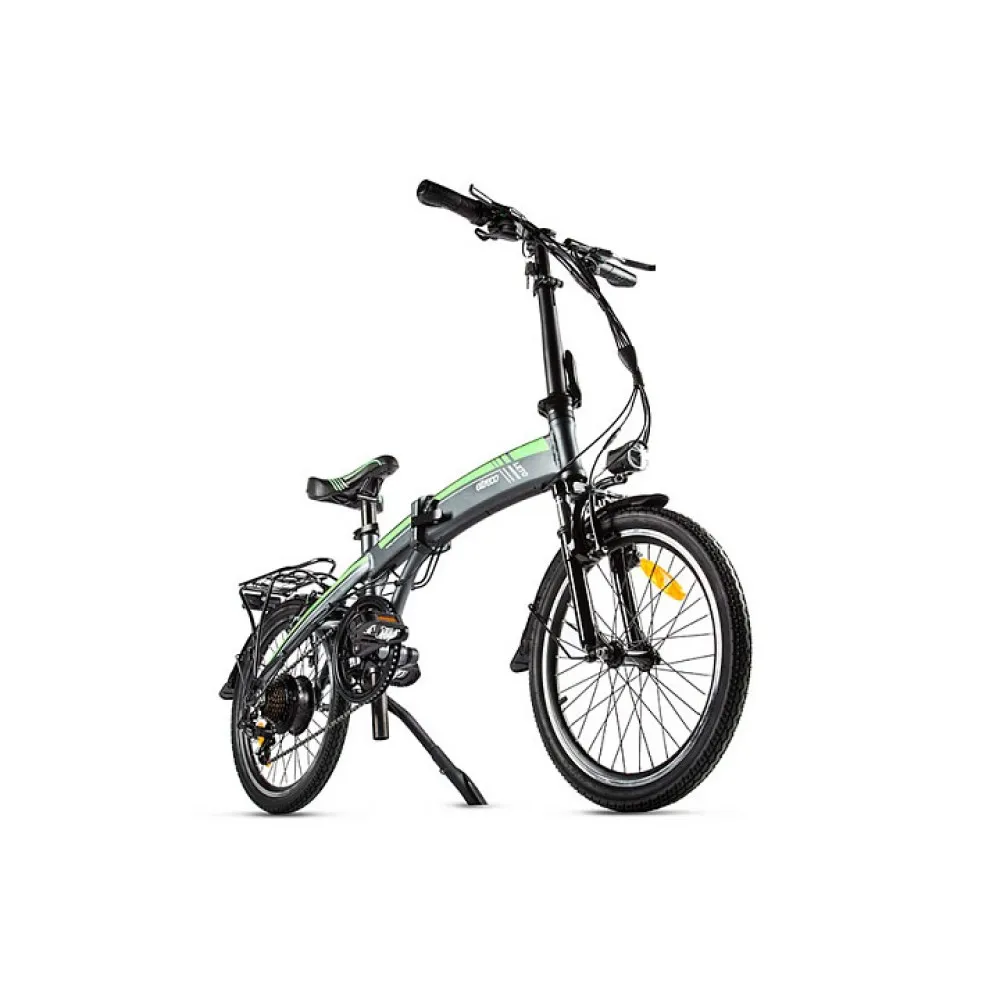 Над задним колесом расположен металлический багажник для надежной фиксации личных вещей. 20-дюймовые колеса повышают маневренность электровелосипеда, а амортизированная подвеска позволяет комфортно преодолевать неровности дороги. Велогибрид Eltreco LETO весит меньше 22 килограммов и имеет складную конструкцию. В сложенном виде данная модель настолько компактна, что без труда поместиться в пассажирском лифте или багажнике автомобиля.