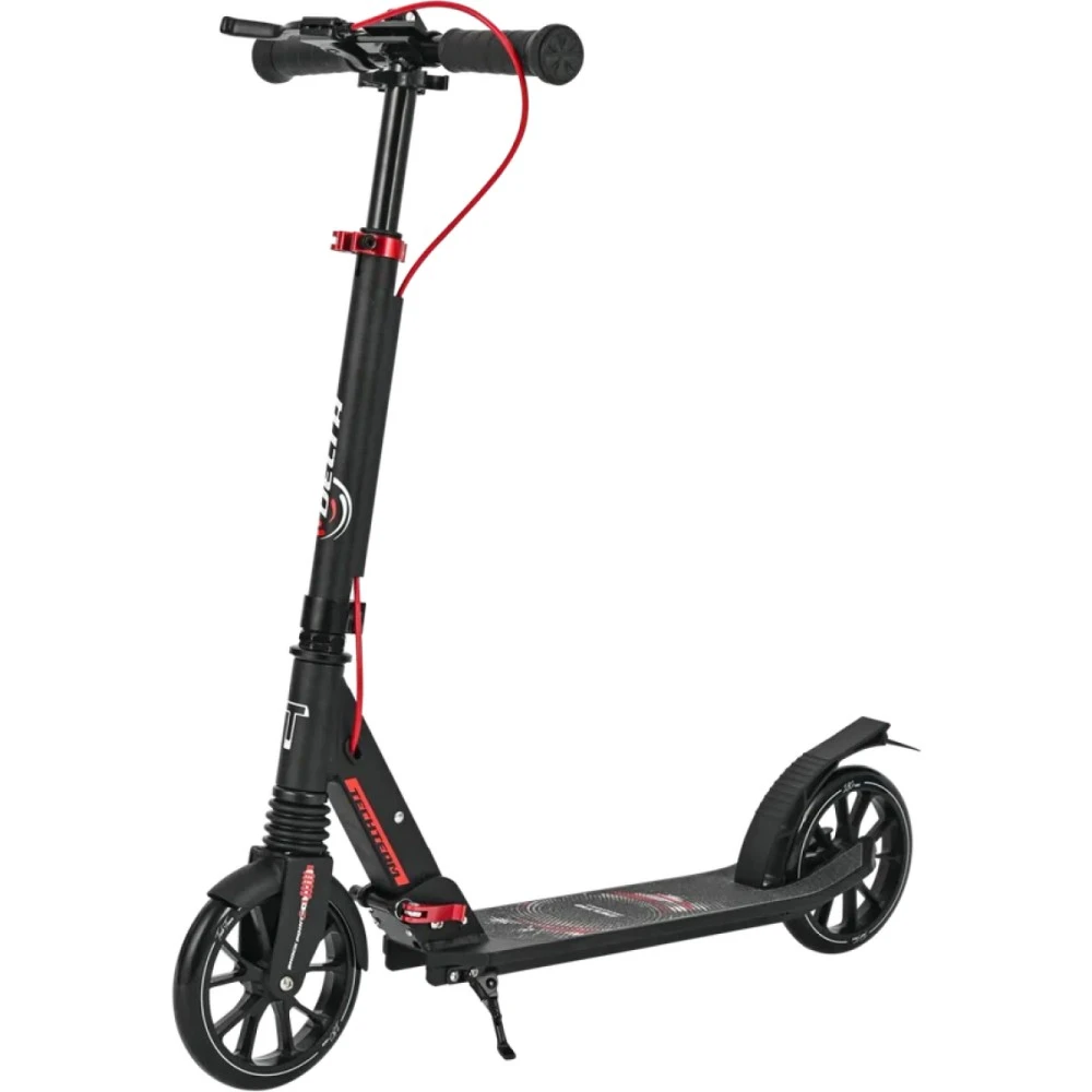 Удобная рулевая часть регулируется в трёх положениях - 750-820-890 мм, имеет широкий зажим, благодаря которому исключается люфт, являющийся главным источником посторонних шумов. Колесная часть – полиуретановая, мало стираемая, размерами 180 мм с подшипниками ABEC 7 Chrome. В сочетании с брендовой тормозной системой гарантирует безопасность, своевременность остановки и массу приятных впечатлений.