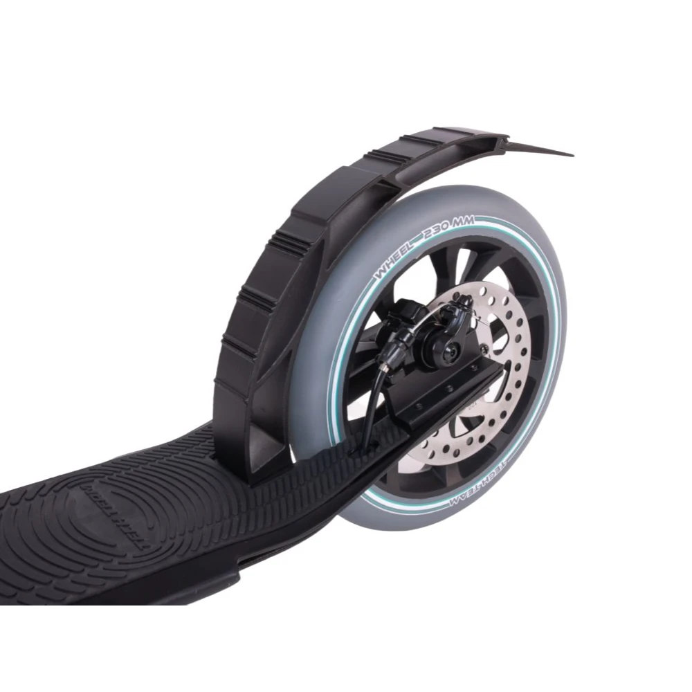 Компактная и эргономичная техника весит 6,5 кг. При необходимости может складываться по современной схеме достигать минималистичных размеров, удобных для транспортировки в авто и хранении. Руль, широкий, удобный, не вызывает усталости при длительной езде. Изготовлен из ударопрочного облегченного материала, выдерживающего механическое воздействие и езду в жестких условиях.