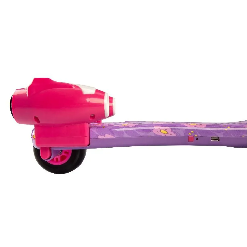 Главная особенность самоката - две турбины, расположенные в задней части деки, - они создают эффект вырывающегося пламени и дыма, как будто вы управляете космическим кораблем! Важно отметить, что такой эффект совершенно безопасен и не принесет вреда окружающим или самому ребенку. Дело заключается в паре, который образовывается из залитой внутрь жидкости, а за счет подсветки зрительно кажется, что он идет от «огня».