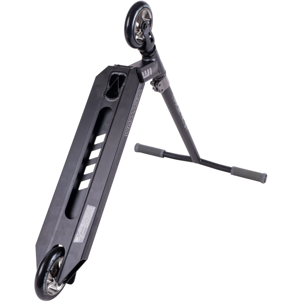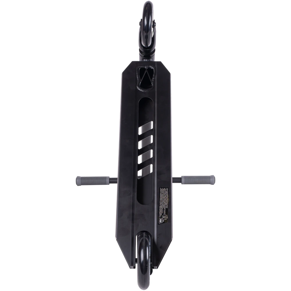 Модель представлена современным дизайном, резко отличается от других моделей. Удобная комфортная и маневренная, рассчитана на эксплуатацию в жестких условиях. "Y"- образная рулевая часть изготовлена из хроммолибденовой стали. Ширина руля удобная для захвата - составляет 51 см, по высоте – 57 см. Длительное время не теряет первоначальных характеристик. 110-мм колесная часть с подшипниками ABEC 9 и фирменная тормозная система из нейлона и стали обещают отличный накат и своевременность торможения. Безопасность эксплуатации обусловлена качественными грипсами и нескользящей декой, торможением с помощью фирменного заднего тормоза.