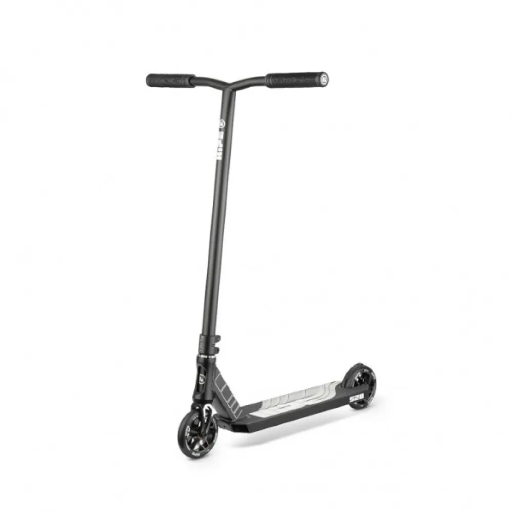 Модель выглядит привлекательно и заметно на фоне других участников трюкачества. Главными достоинствами самоката являются маневренность и легкость управления, благодаря фирменным подшипникам нового типа ABEC-9.120мм полиуретановые колеса малостираемые, долговечные, обещают максимальный разгон. Техника изготовлена из облегченного инновационного алюминия и стали, благодаря которым масса самоката составляет 3,55 кг, а срок службы - продолжительный. Высота руля – комфортная для взрослого пользователя, составляет 650мм.