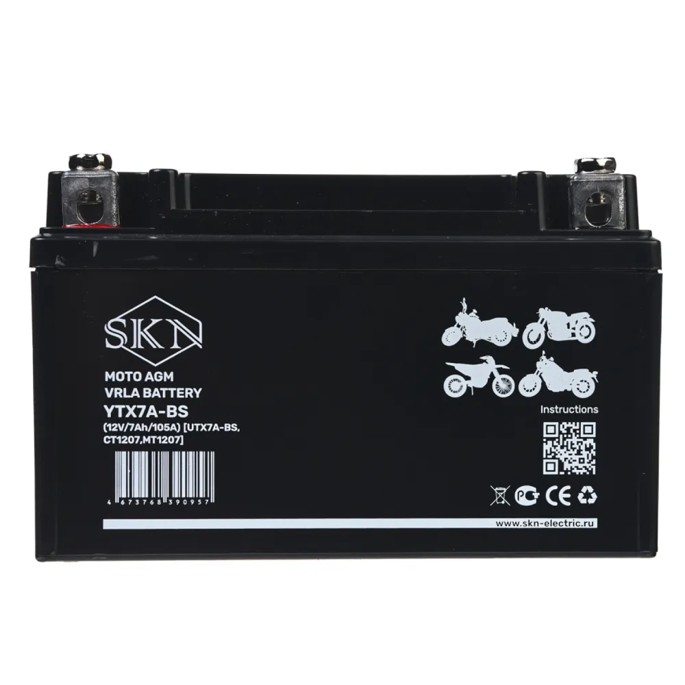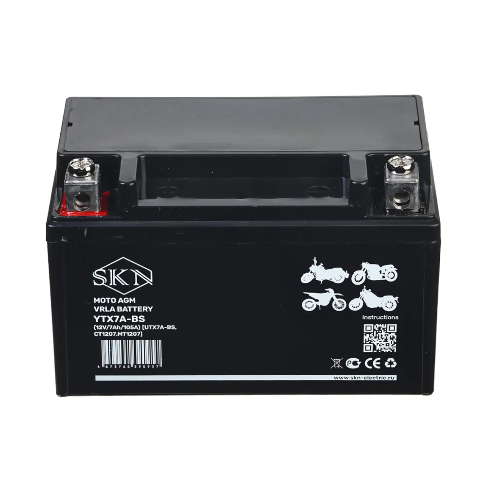 Аккумулятор стартерный для мототехники SKN YTX7A-BS [12V/7Ah/105A) (UTX7A-BS, CT 1207, MT 1207]